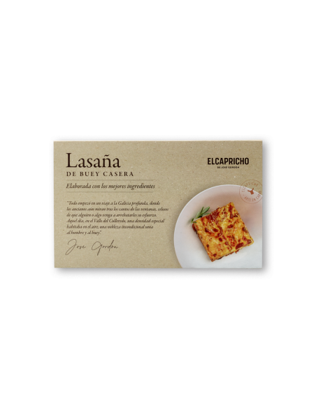 Disfruta de nuestra lasaña artesana precocida de carne de buey 100% con una fina bechamel de 3 quesos, un producto gourmet listo en pocos minutos. Nuestra lasaña se elabora durante el fin de semana y se sirve la semana siguiente para que le llegue a su casa fresca y sin añadir ningún tipo de conservante por lo que puede demorar el resto de su pedido